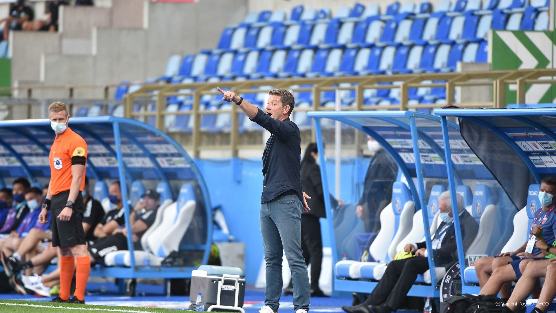 Stéphane Jobard (DFCO) : "Même si la défaite est là, je suis plutôt satisfait du contenu que l'on a proposé. Je suis satisfait de la manière dont on a utilisé le ballon. Cela nous manquait sur les dernières rencontres. On a posé les bases d'une future évolution dans ce domaine. On a réalisé une bonne première mi-temps. En deuxième période, on a trop laissé le ballon aux Strasbourgeois. On connaissait la qualité de frappe de Dimitri Lienard, malheureusement on l'a payé cash. On va construire l'édifice pierre par pierre pour aller engranger ces premiers points."