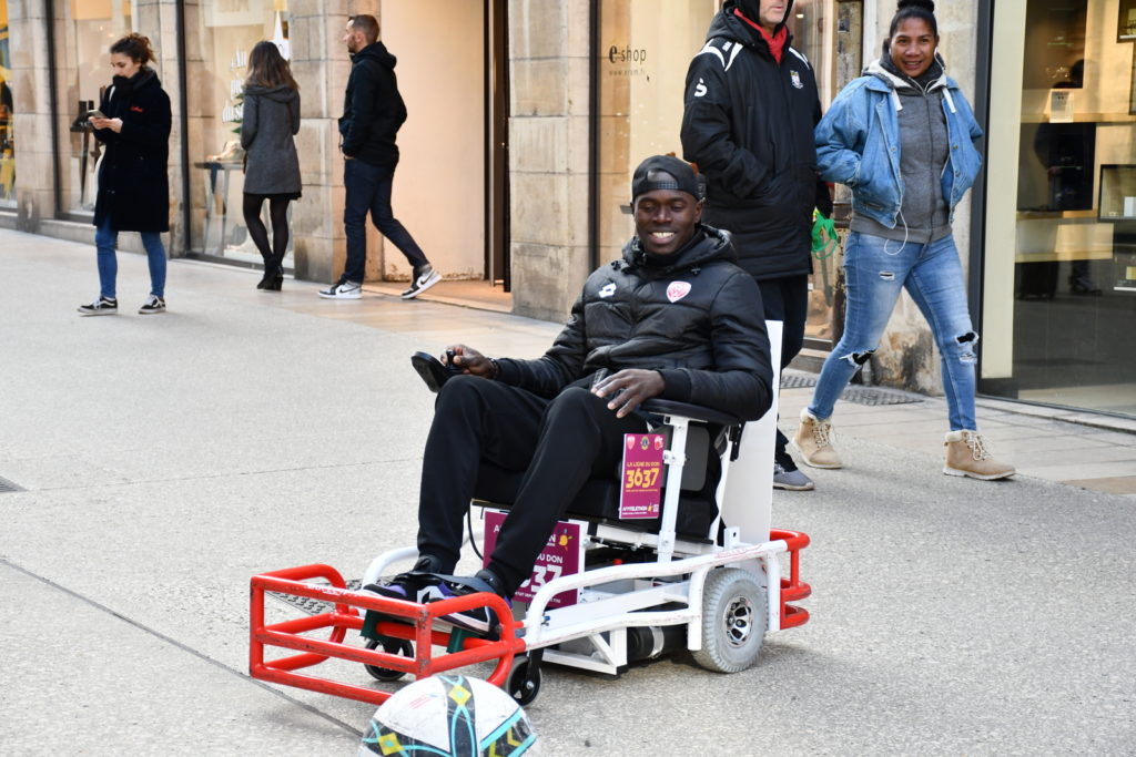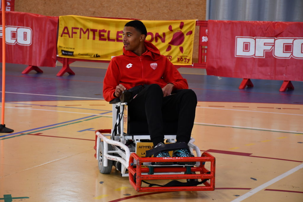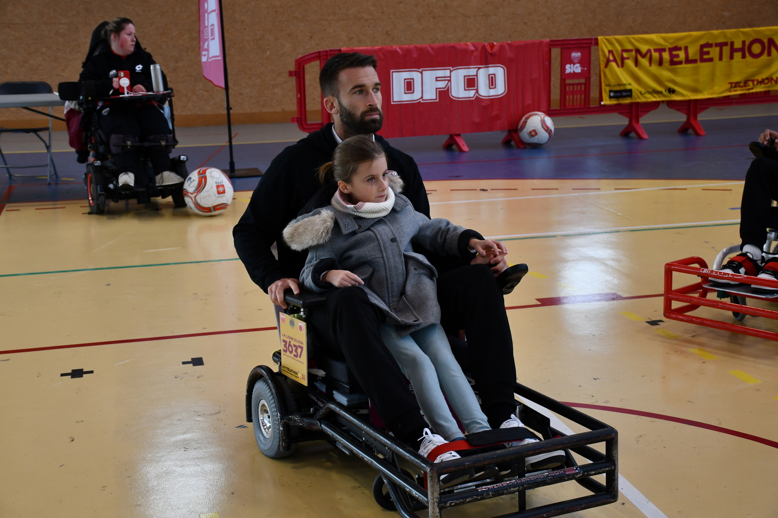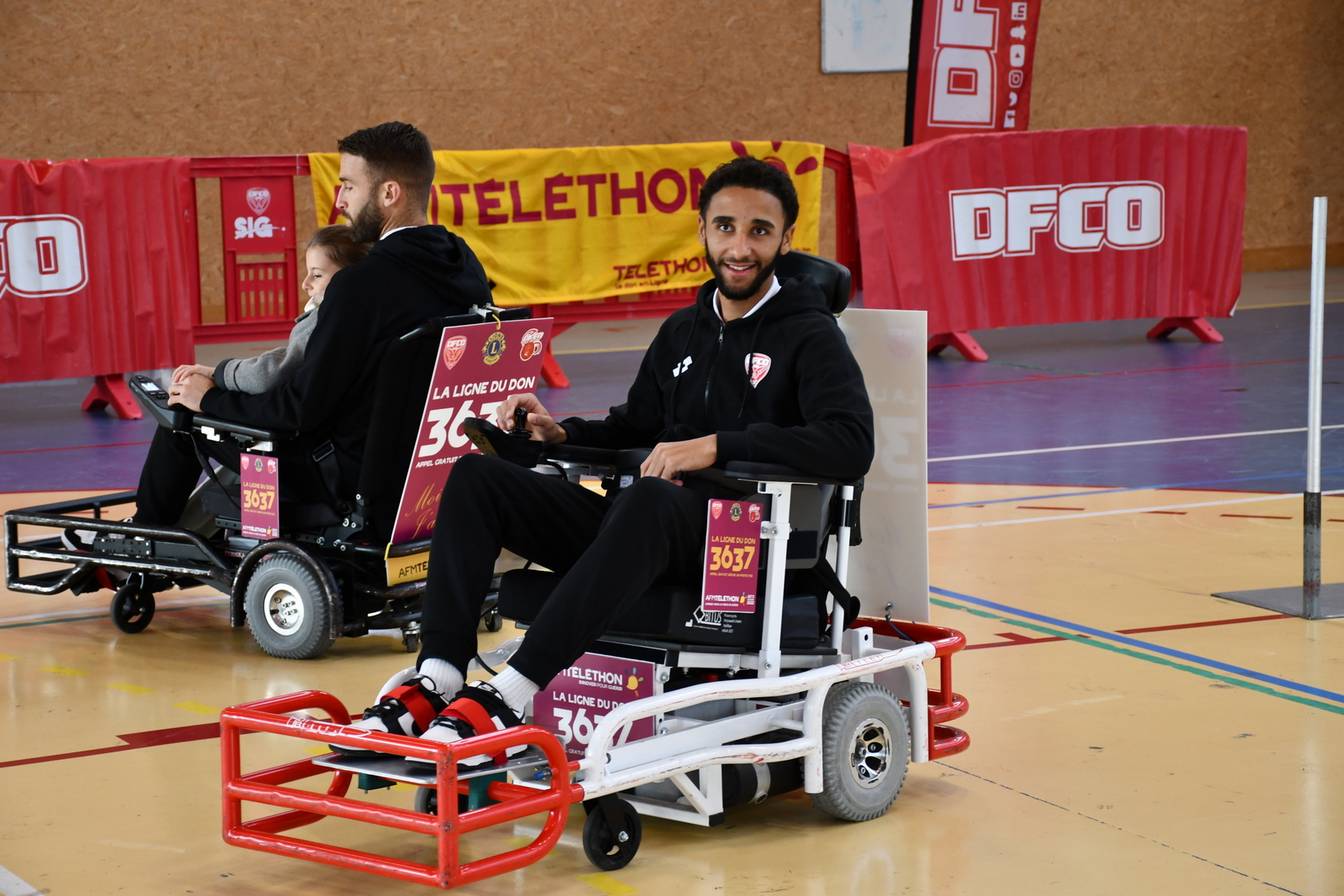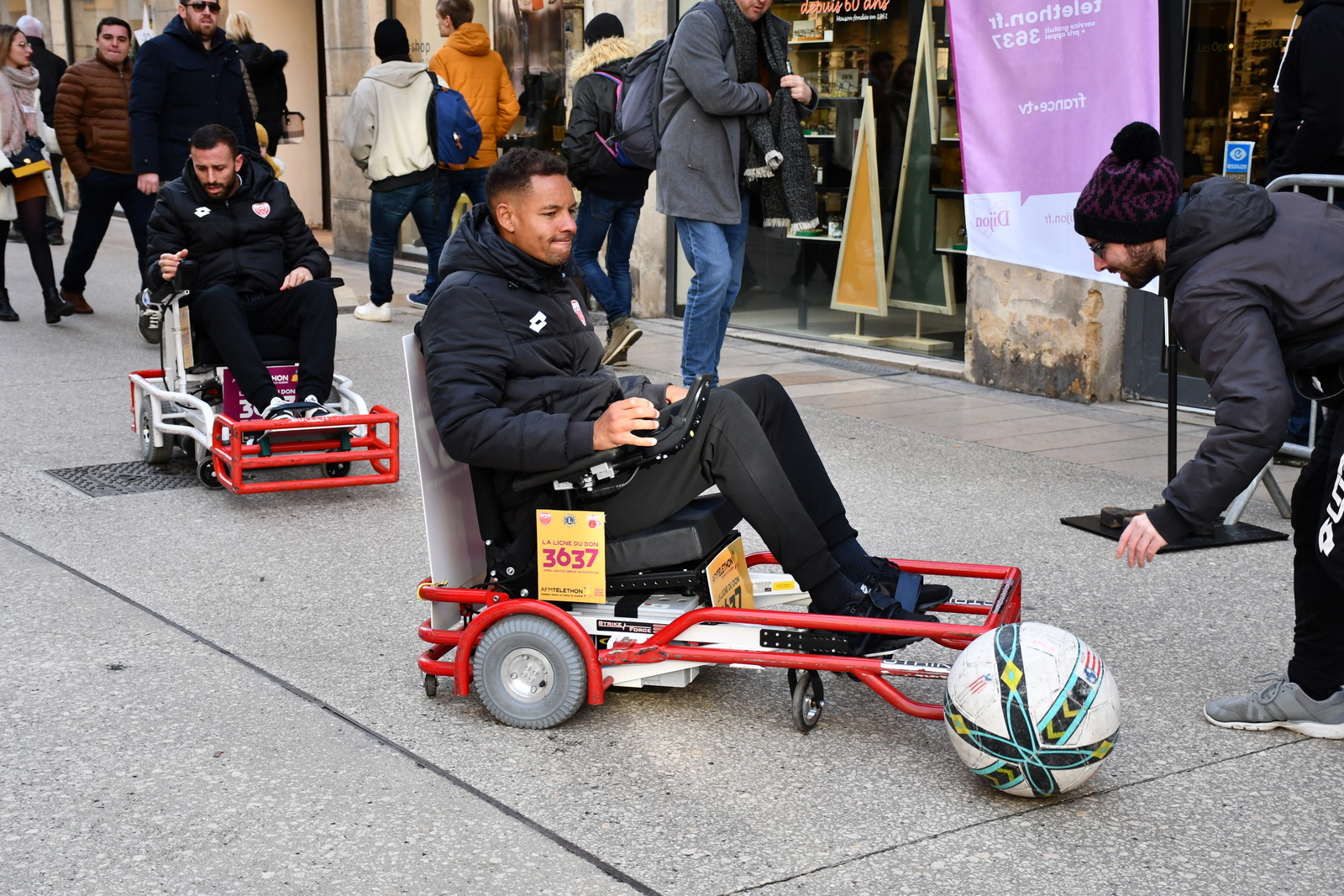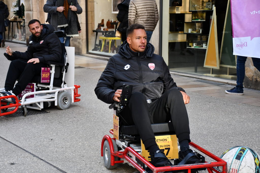 Un peu plus tôt dans la même journée, un stand de foot fauteuil avait été installé place François Rude à Dijon. Les joueurs du DFCO Foot Fauteuil ont eu le plaisir de rencontrer Kev Adams, parrain du Téléthon cette année. Ils ont également pu saluer Omar Daf, Daniel Congré, Baptiste Reynet, Jordan Marié, Zargo Touré venus aussi pour l’occasion.