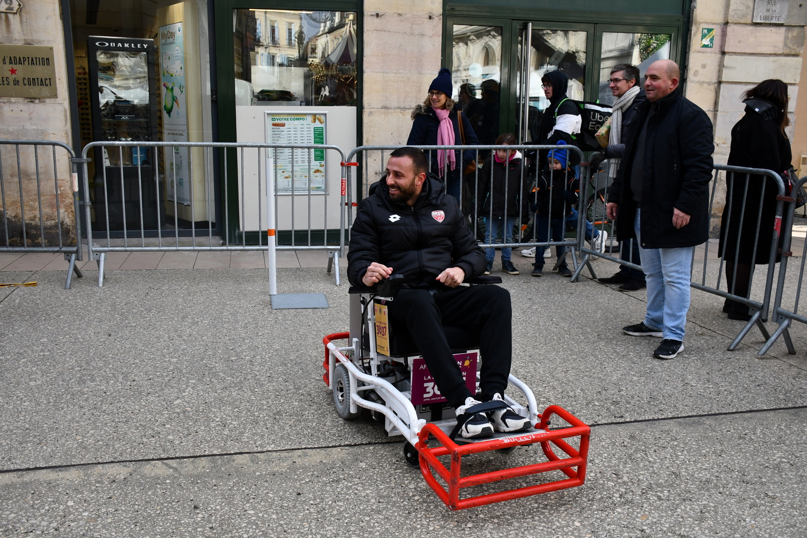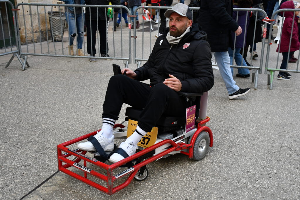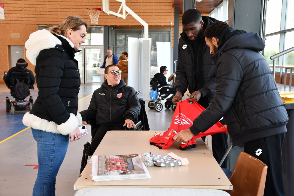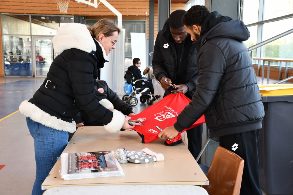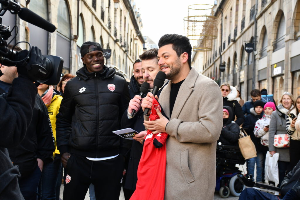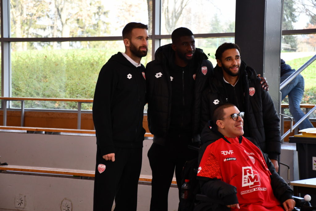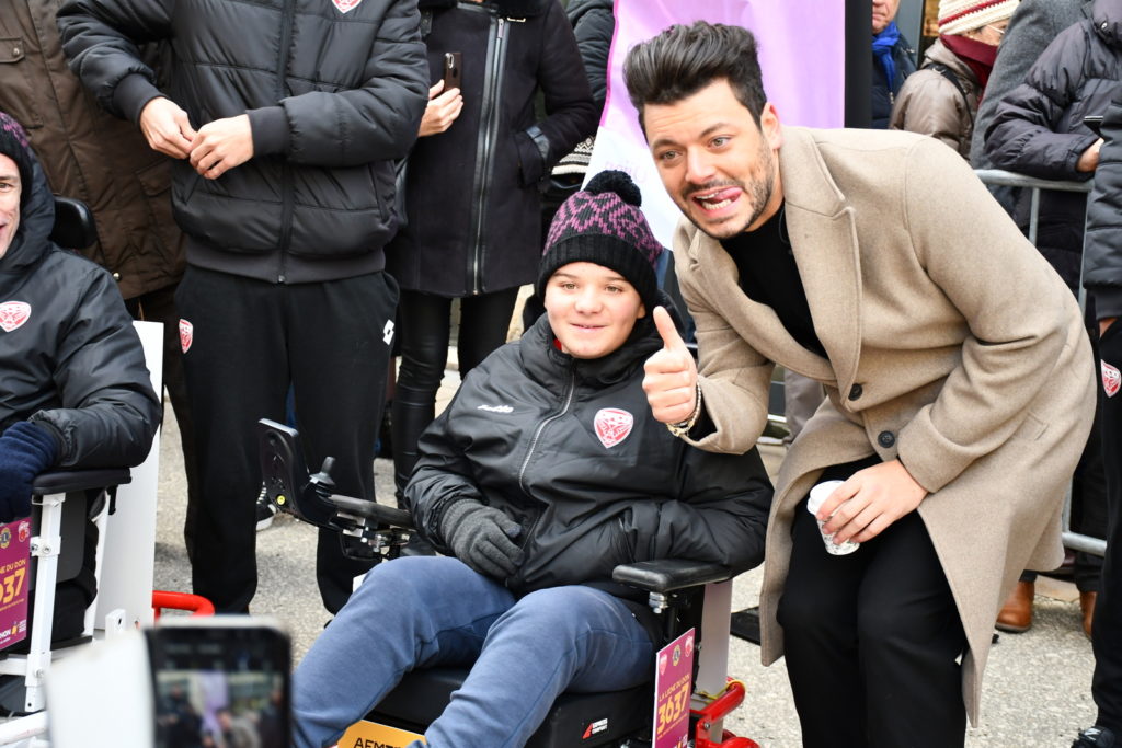 Un peu plus tôt dans la même journée, un stand de foot fauteuil avait été installé place François Rude à Dijon. Les joueurs du DFCO Foot Fauteuil ont eu le plaisir de rencontrer Kev Adams, parrain du Téléthon cette année. Ils ont également pu saluer Omar Daf, Daniel Congré, Baptiste Reynet, Jordan Marié, Zargo Touré venus aussi pour l’occasion.