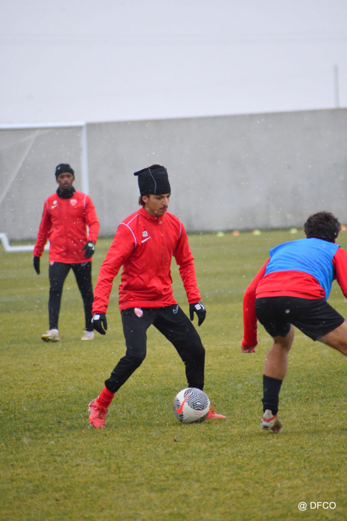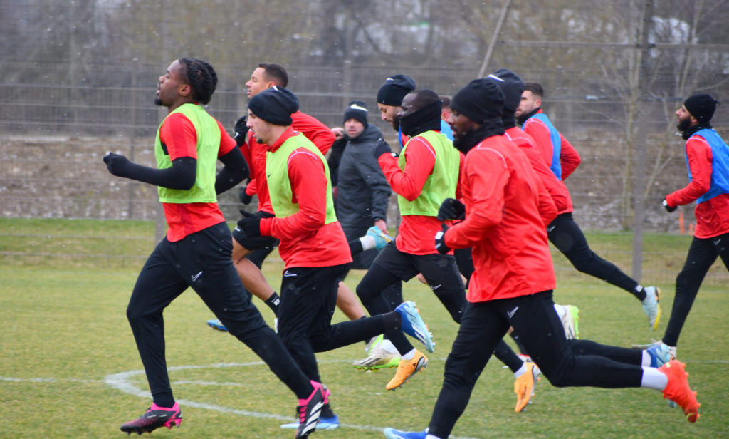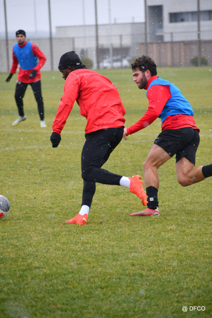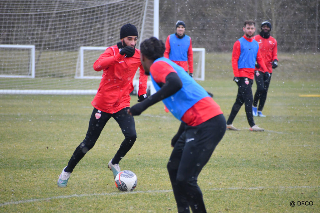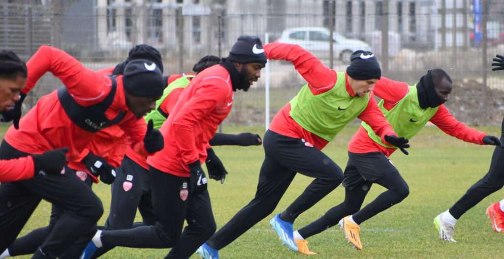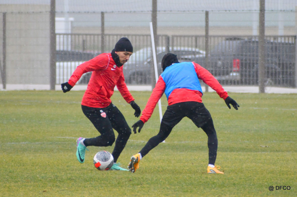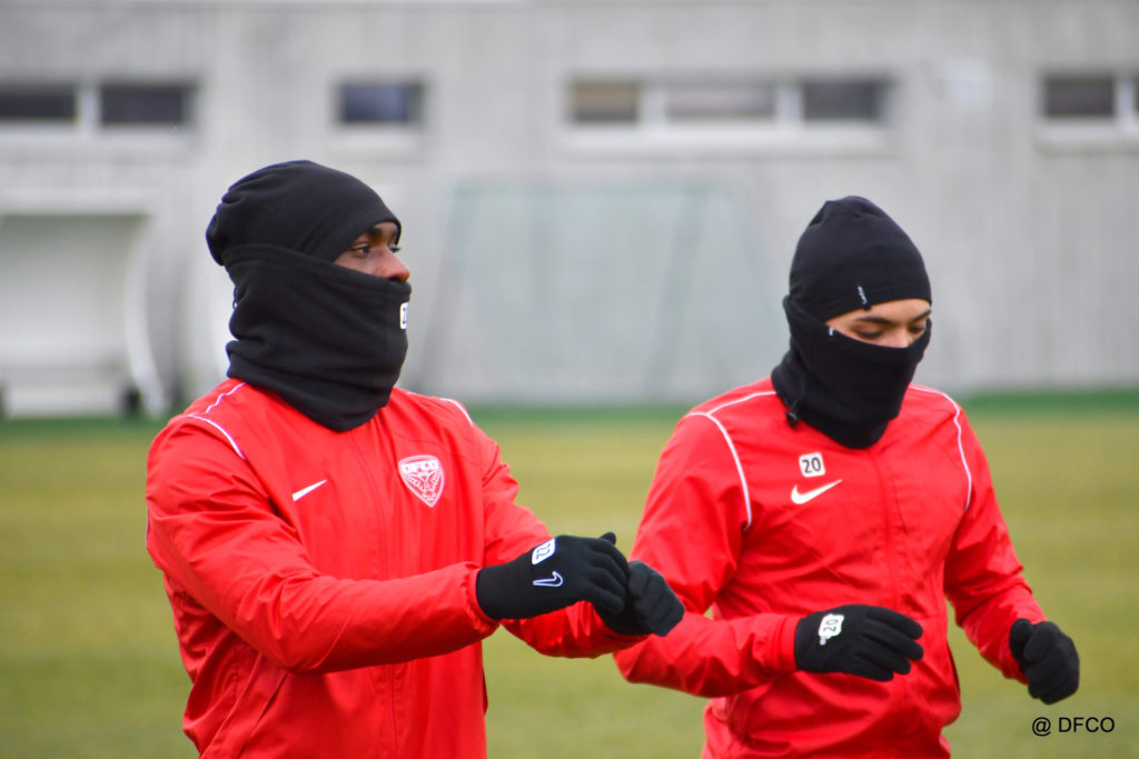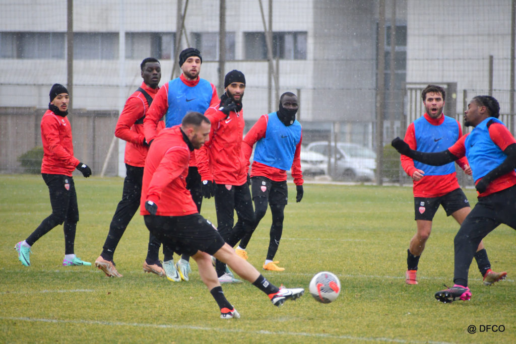 Alors que le thermomètre affichait -3°C (-8°C ressenti) mardi matin, le groupe professionnel a effectué sa deuxième séance de la semaine, afin de préparer le déplacement à Martigues (17e journée de National).