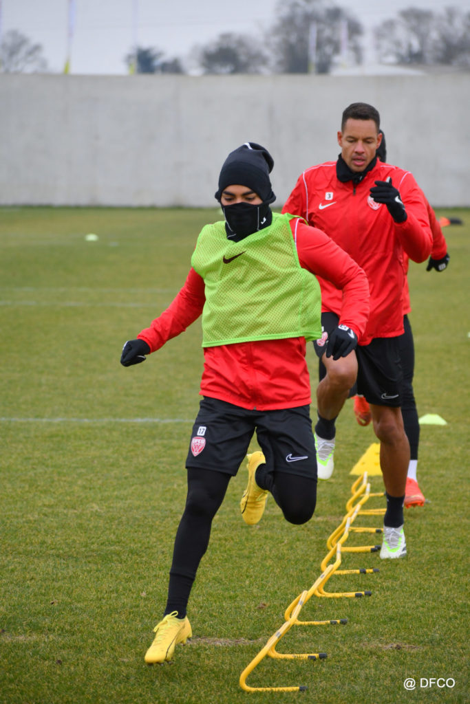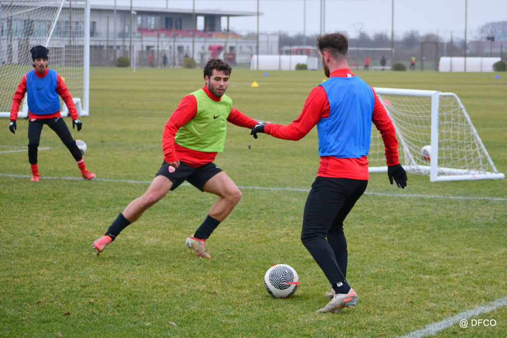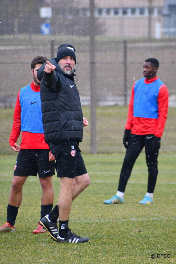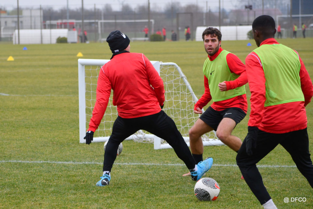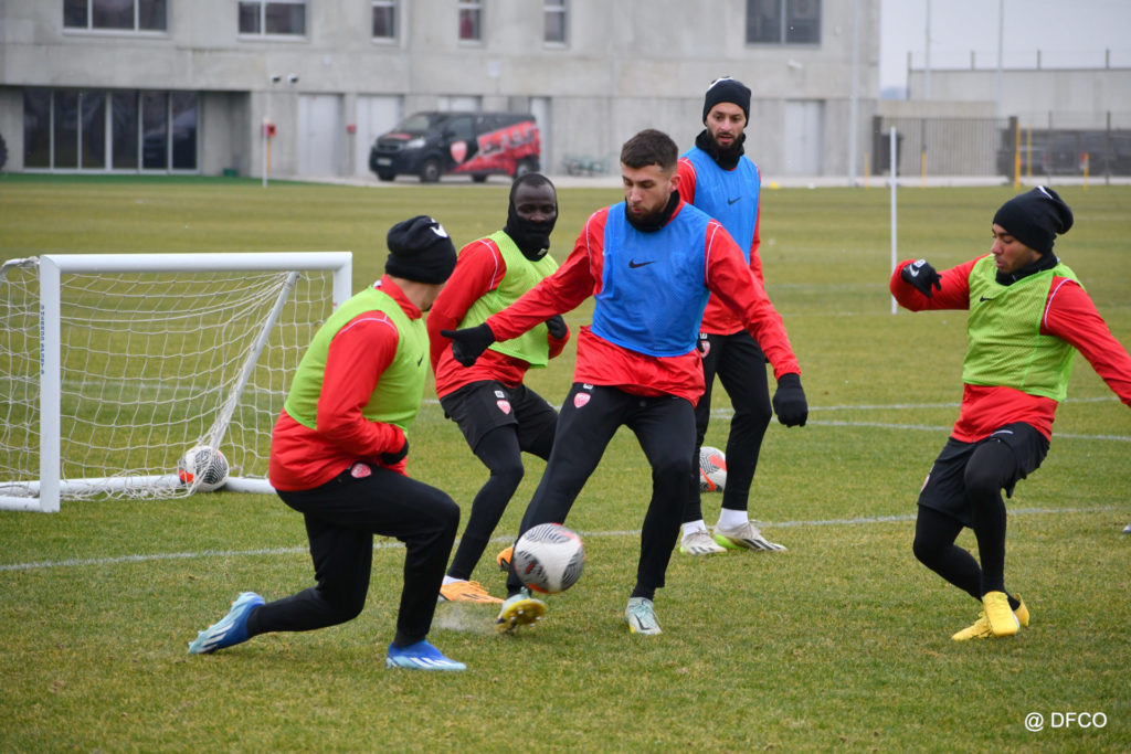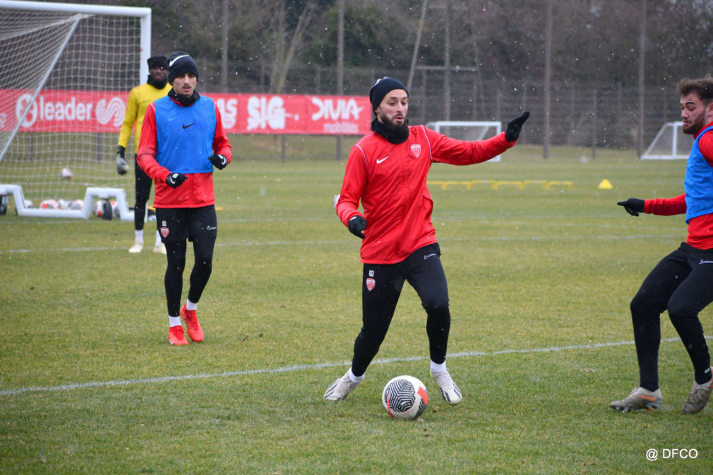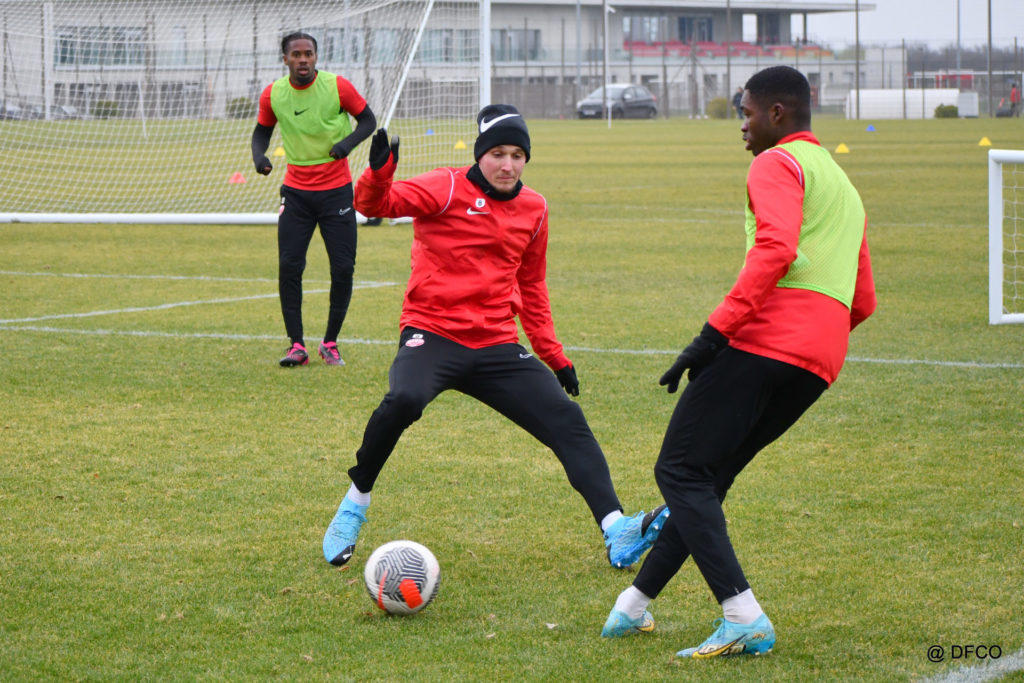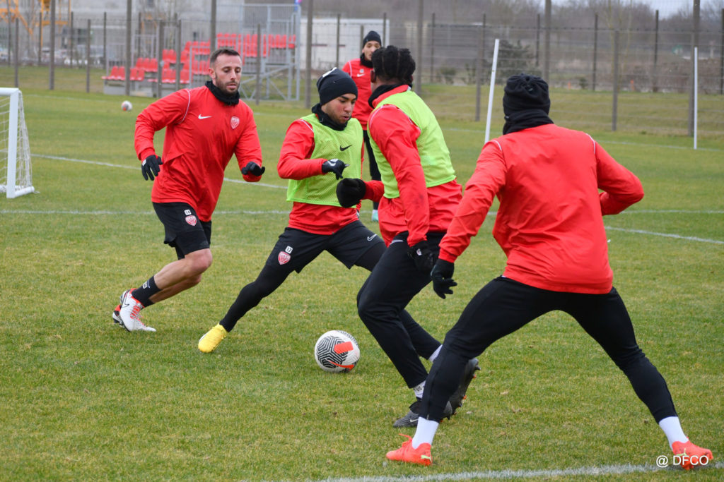 Alors que le thermomètre affichait -3°C (-8°C ressenti) mardi matin, le groupe professionnel a effectué sa deuxième séance de la semaine, afin de préparer le déplacement à Martigues (17e journée de National).