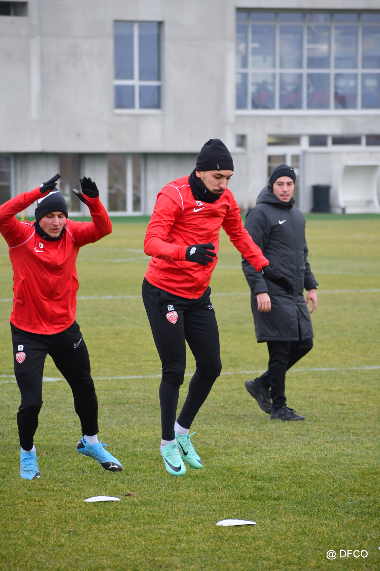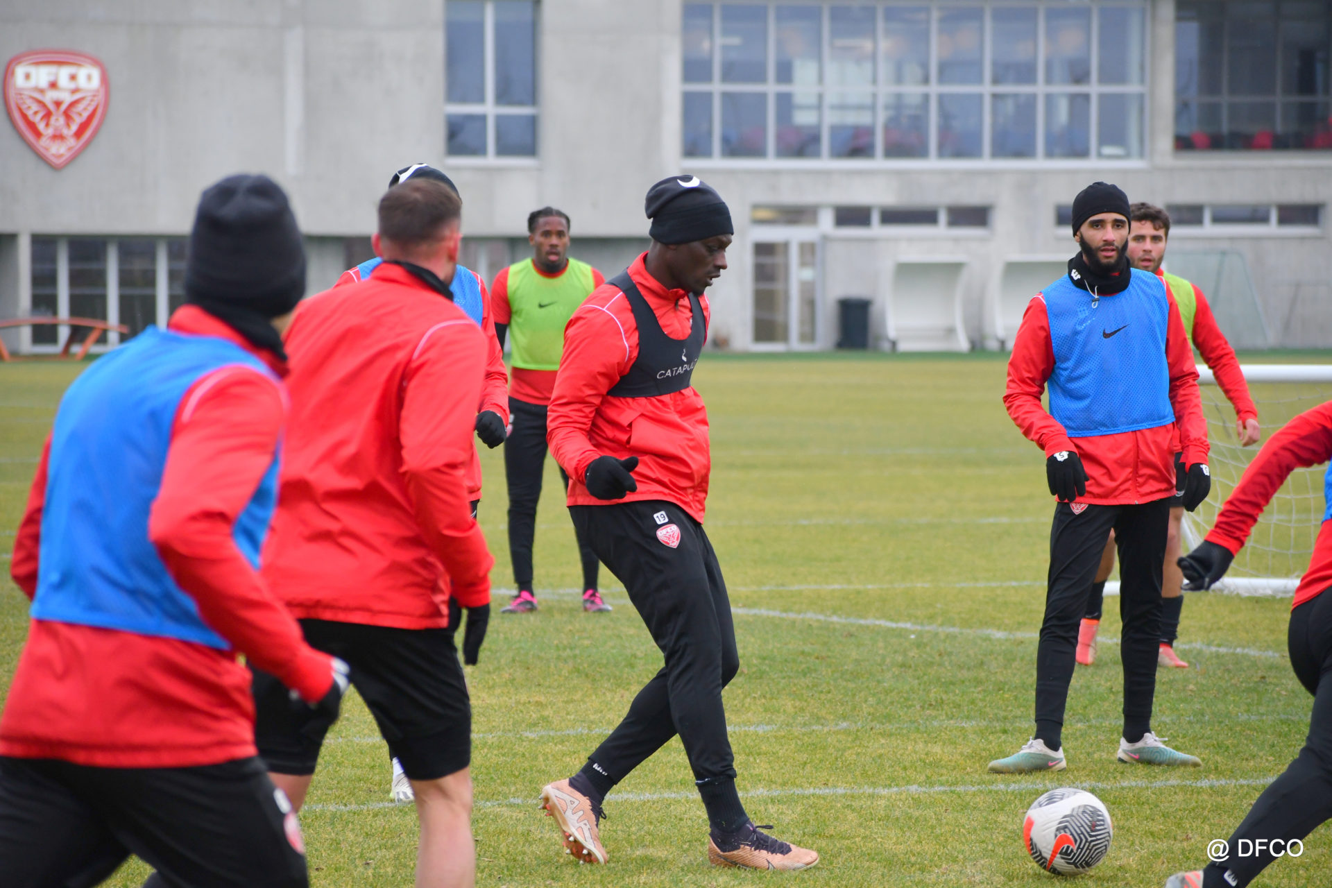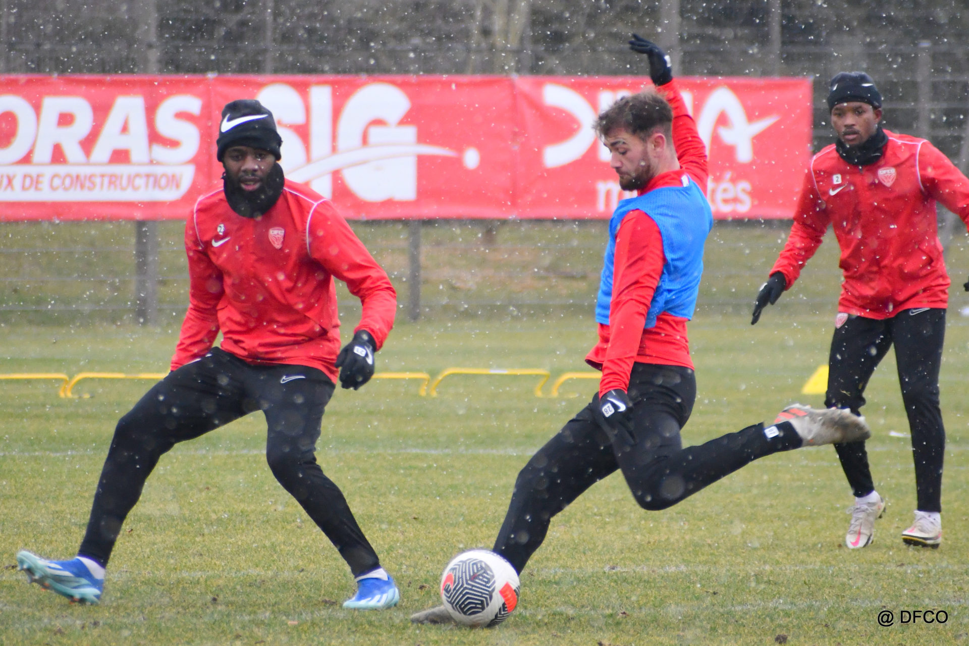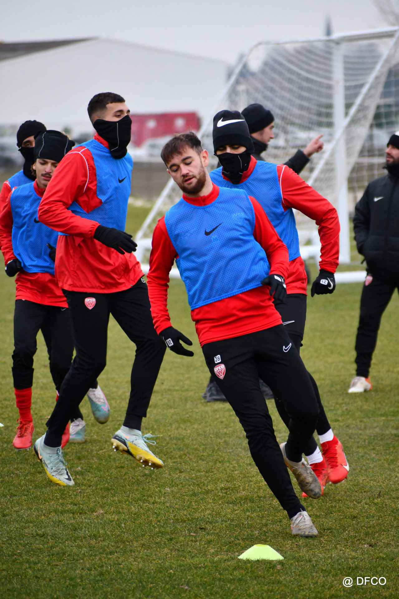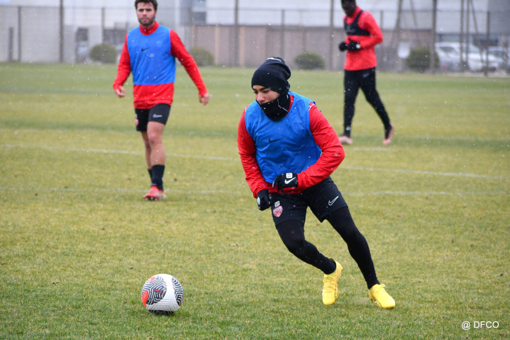 Alors que le thermomètre affichait -3°C (-8°C ressenti) mardi matin, le groupe professionnel a effectué sa deuxième séance de la semaine, afin de préparer le déplacement à Martigues (17e journée de National).