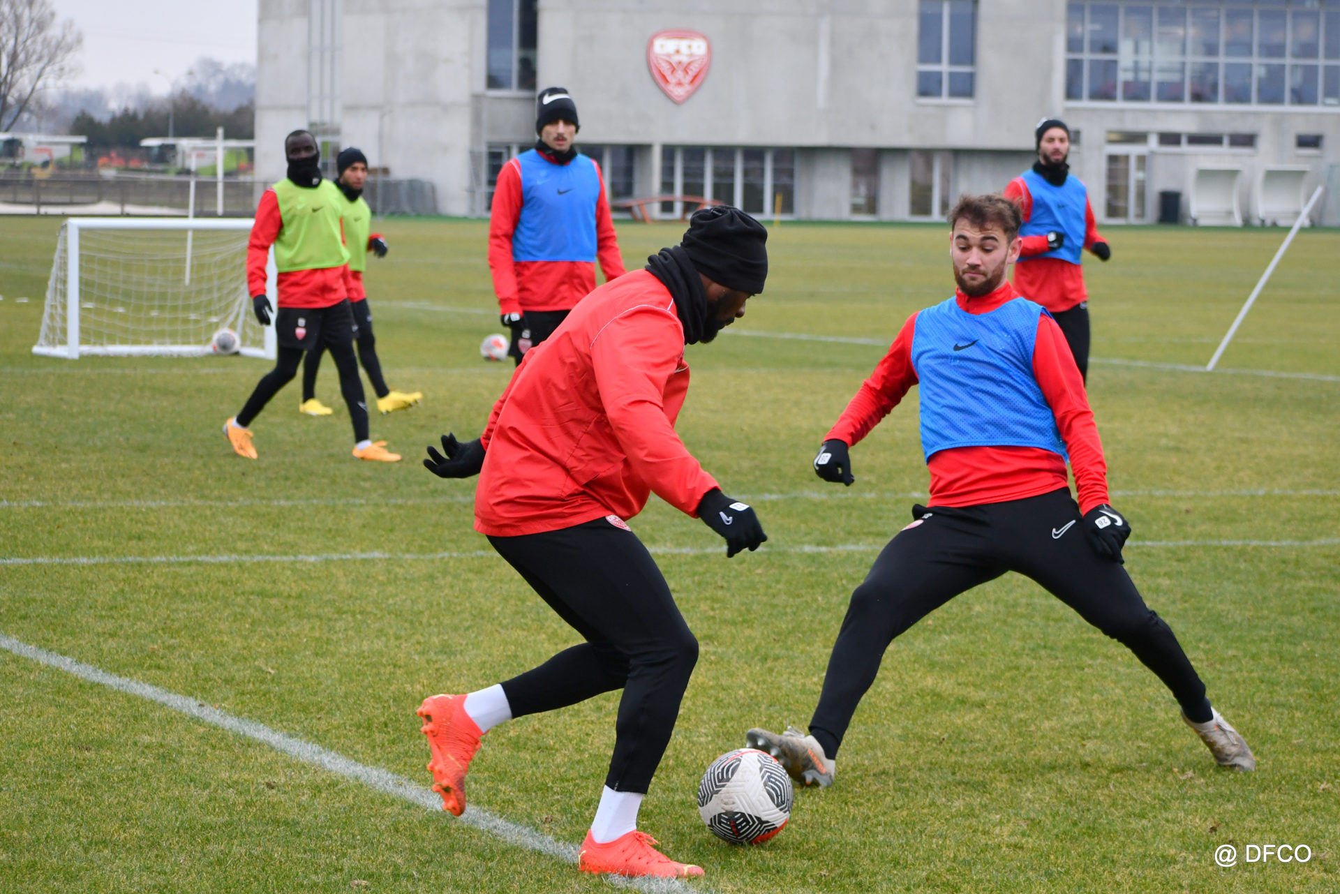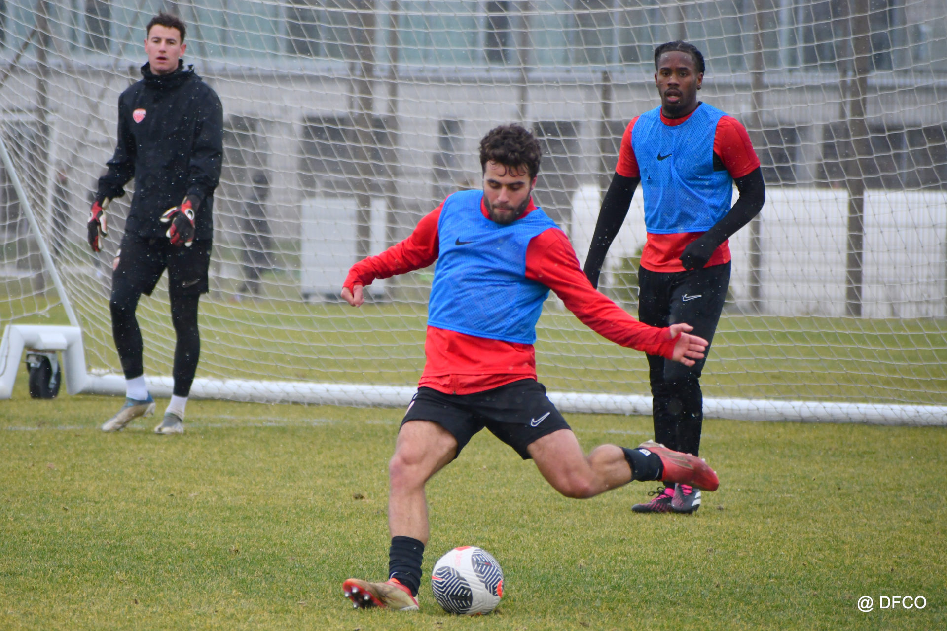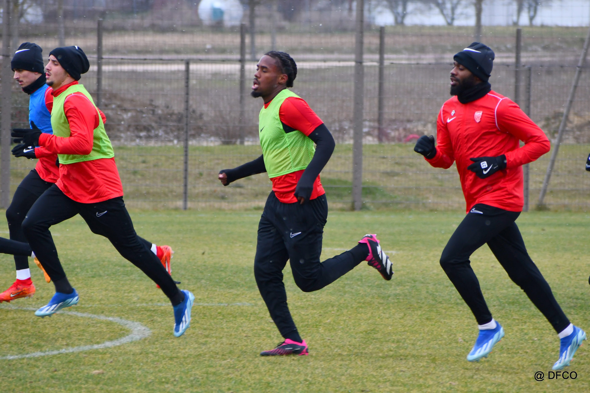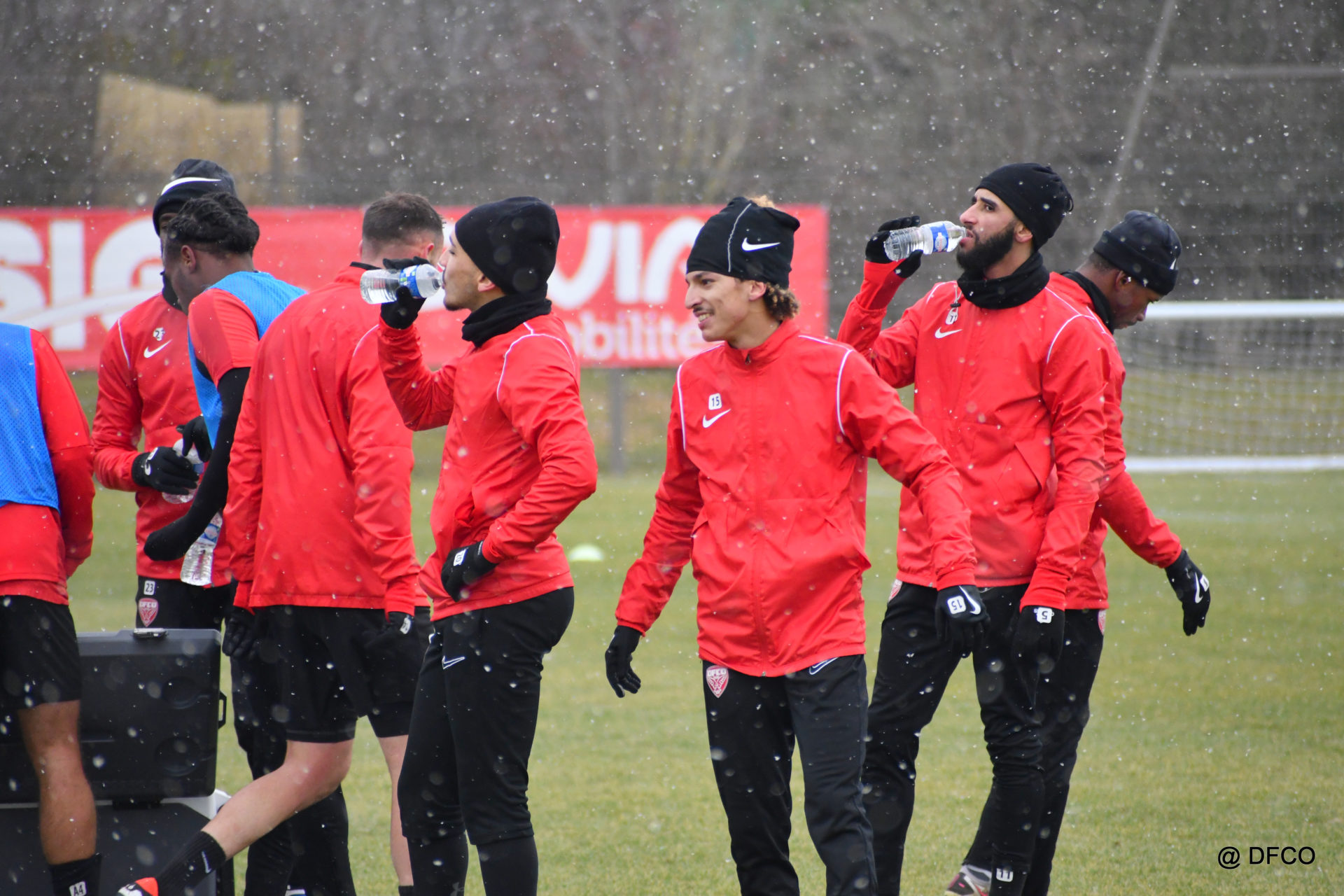 Alors que le thermomètre affichait -3°C (-8°C ressenti) mardi matin, le groupe professionnel a effectué sa deuxième séance de la semaine, afin de préparer le déplacement à Martigues (17e journée de National).