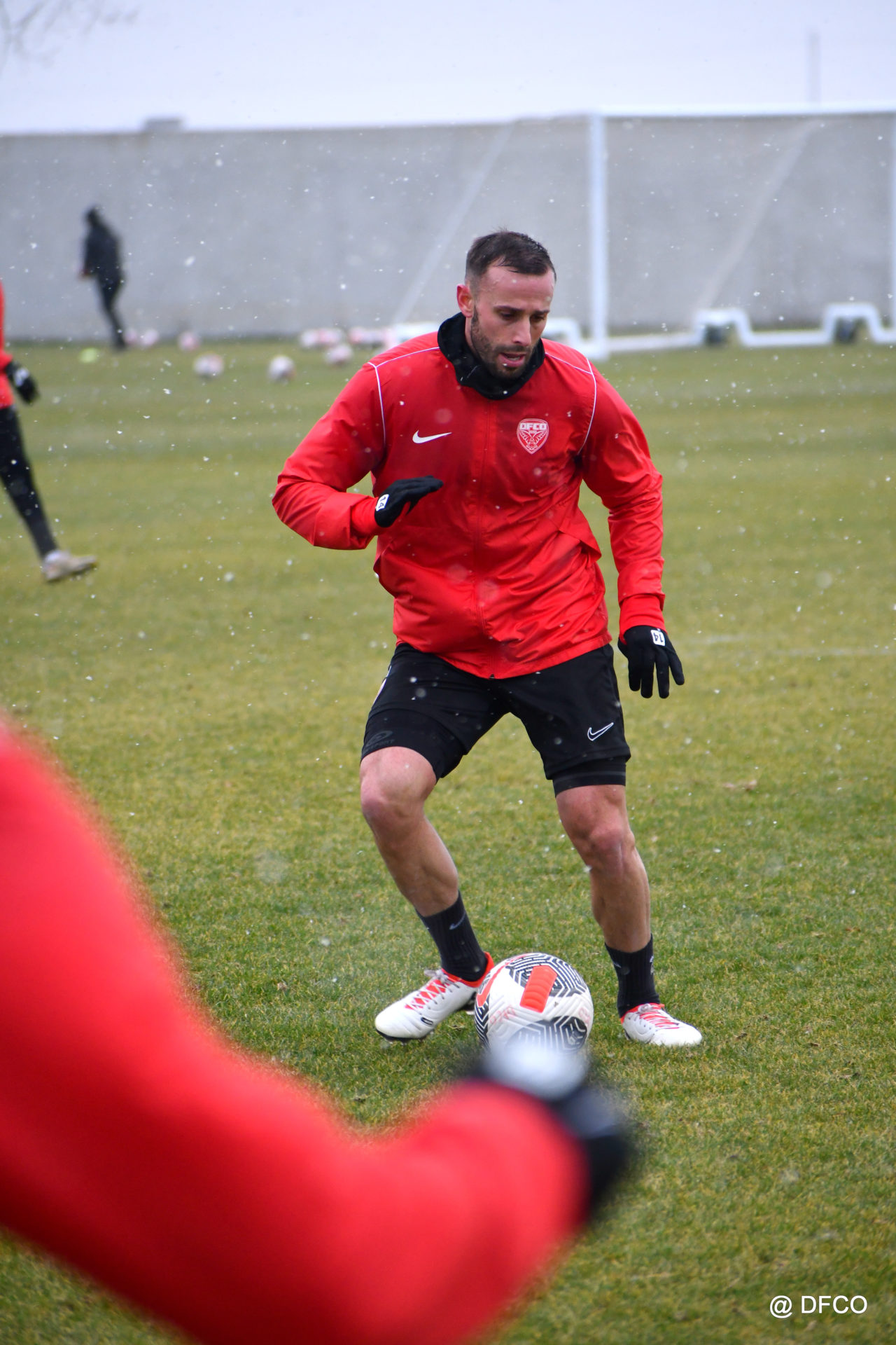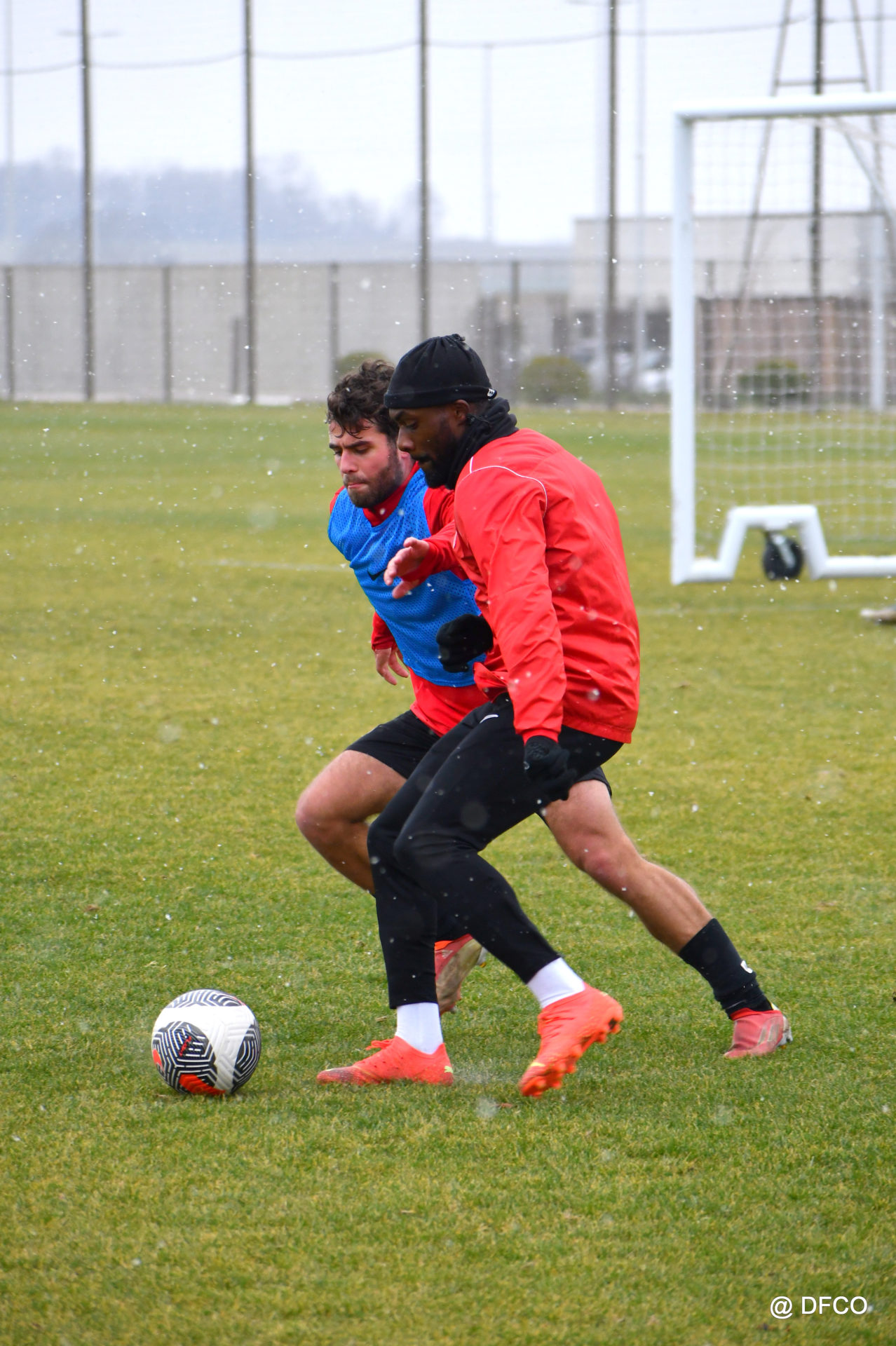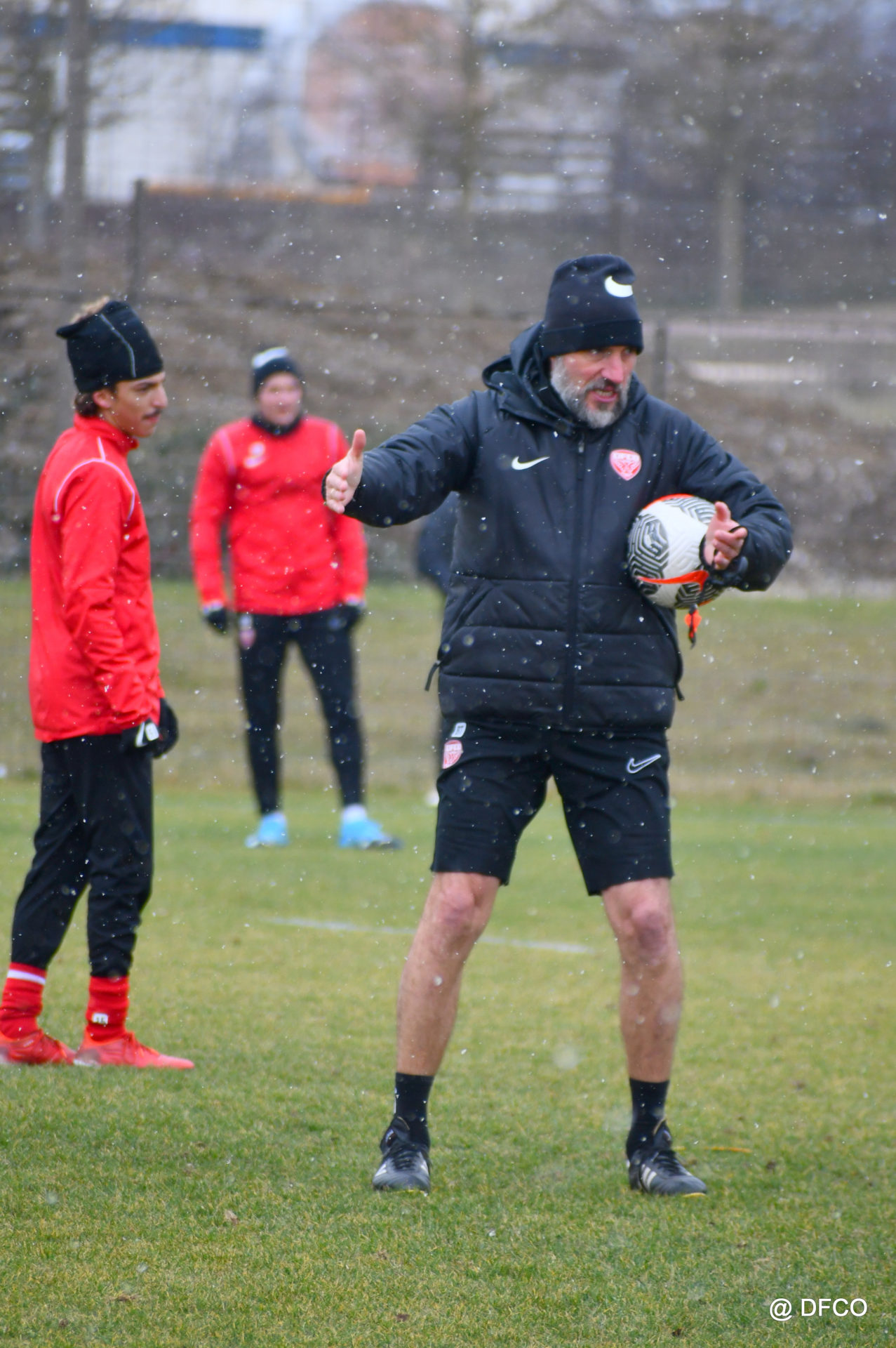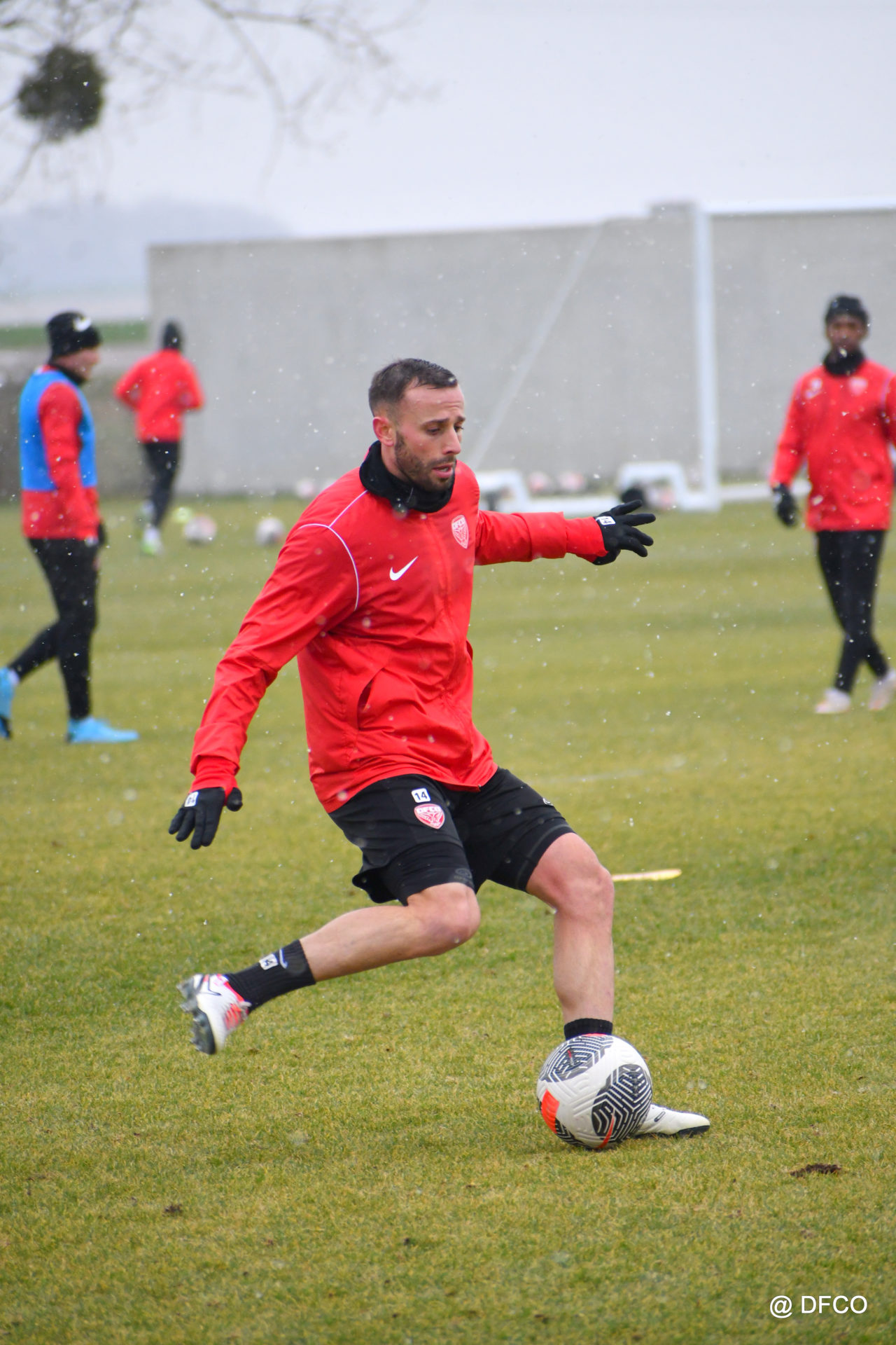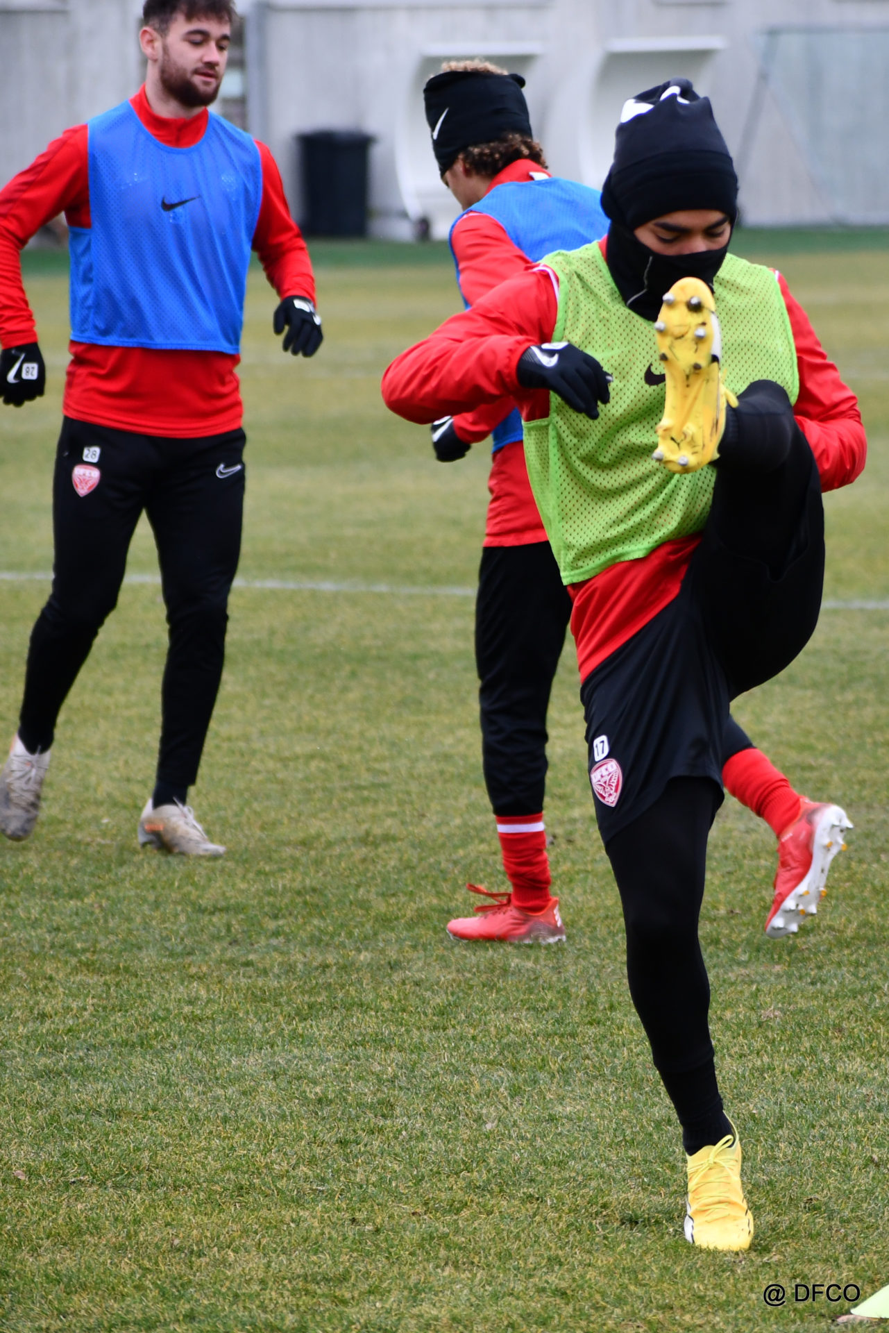 Alors que le thermomètre affichait -3°C (-8°C ressenti) mardi matin, le groupe professionnel a effectué sa deuxième séance de la semaine, afin de préparer le déplacement à Martigues (17e journée de National).