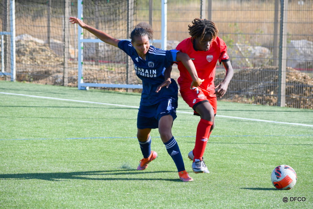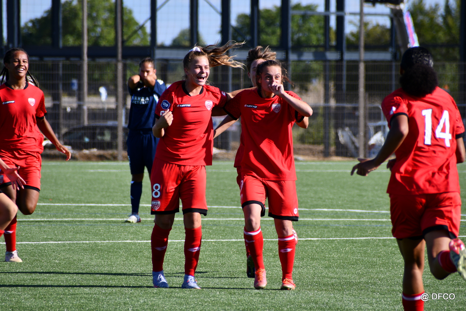 Malgré une bonne première mi-temps où les dijonnaises ont dominé les débats et se sont créées plusieurs belles occasion, il a fallu attendre le retour des vestiaires pour voir le DFCO ouvrir le score. Sur coup-franc, Louise Rejany servait Madeleine Yetna pour l’ouverture du score (1-0). Sur le but, la capitaine dijonnaise Romane Poux devait quitter ses partenaires (blessure à la clavicule). Deuxième coup dur quelques minutes plus tard puisque le PFC égalisait à la 57ème sur une perte de balle dijonnaise (1-1). Le PFC finissait fort mais la gardienne des Rouges, Emma Courdier, maintenait ses coéquipières dans le match et à la 89ème minute Coralie Delacellery inscrivait un coup franc magnifique et donnait la victoire au DFCO (2-1).