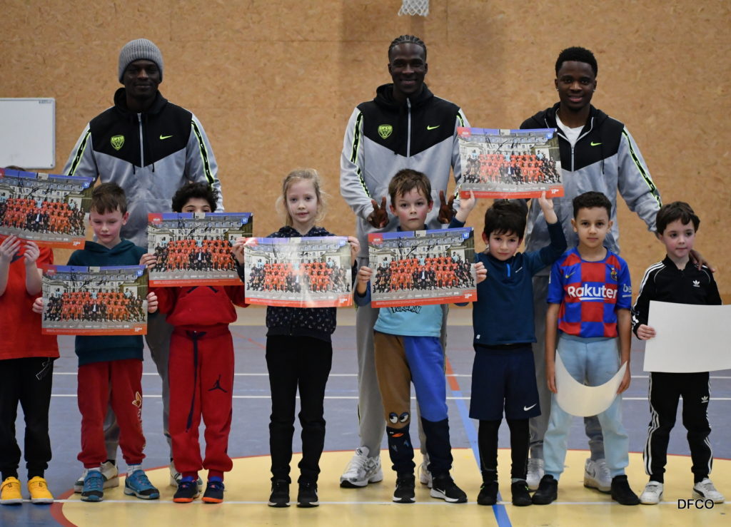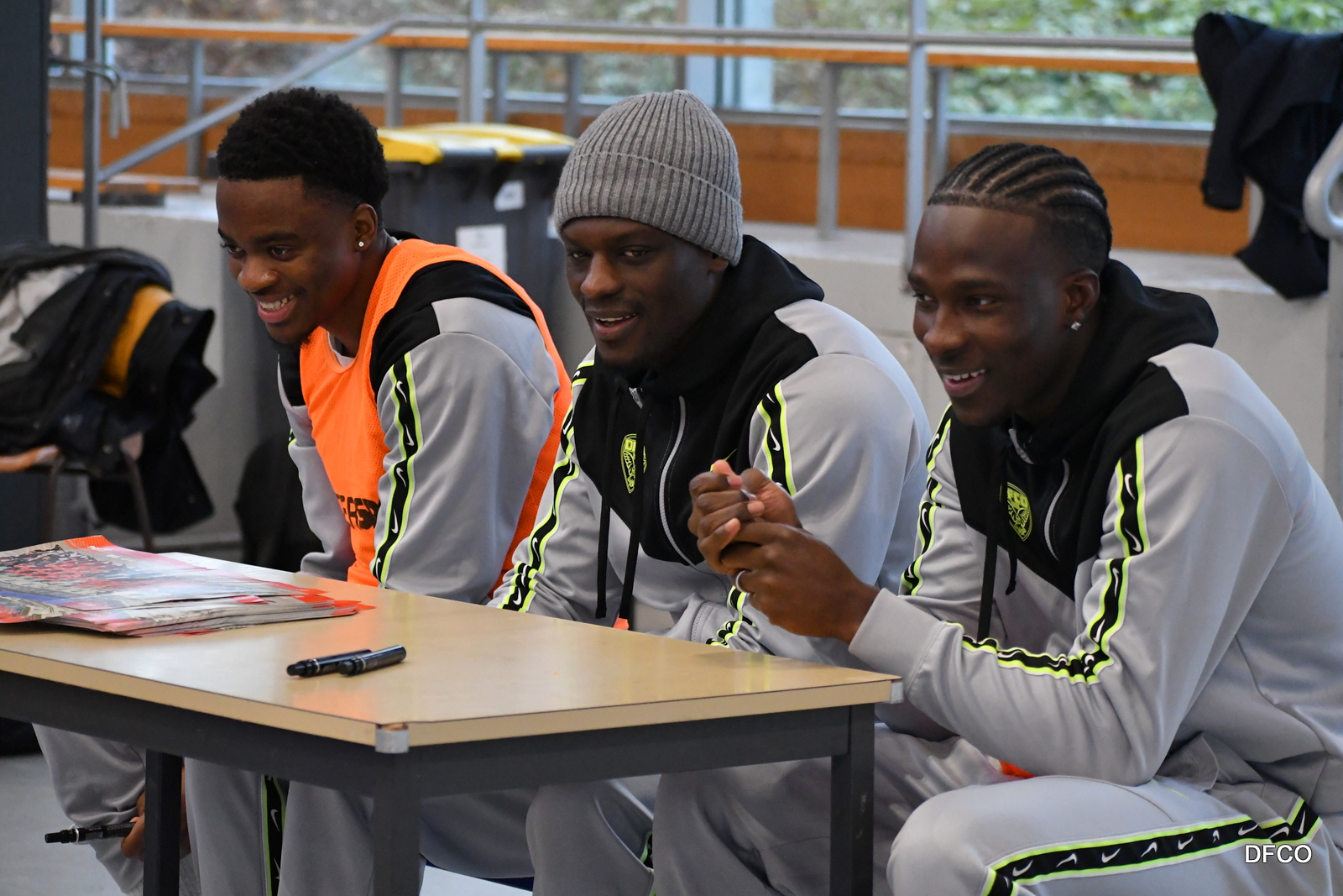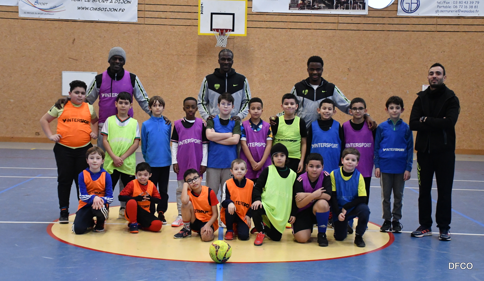Souleymane Cissé, Joseph Mendes, Loïc Etoga se sont rendus mercredi après-midi au gymnase Jean Marion à la rencontre des enfants participants au dispositif Dijon Sport Découverte proposé par la ville de Dijon.
