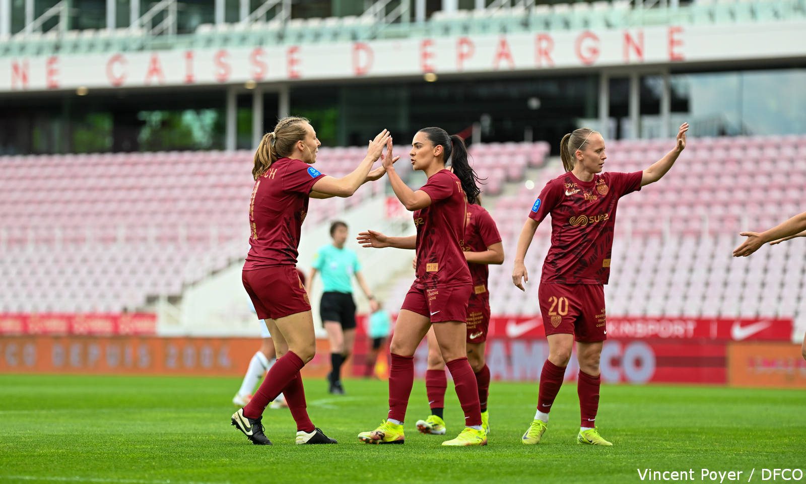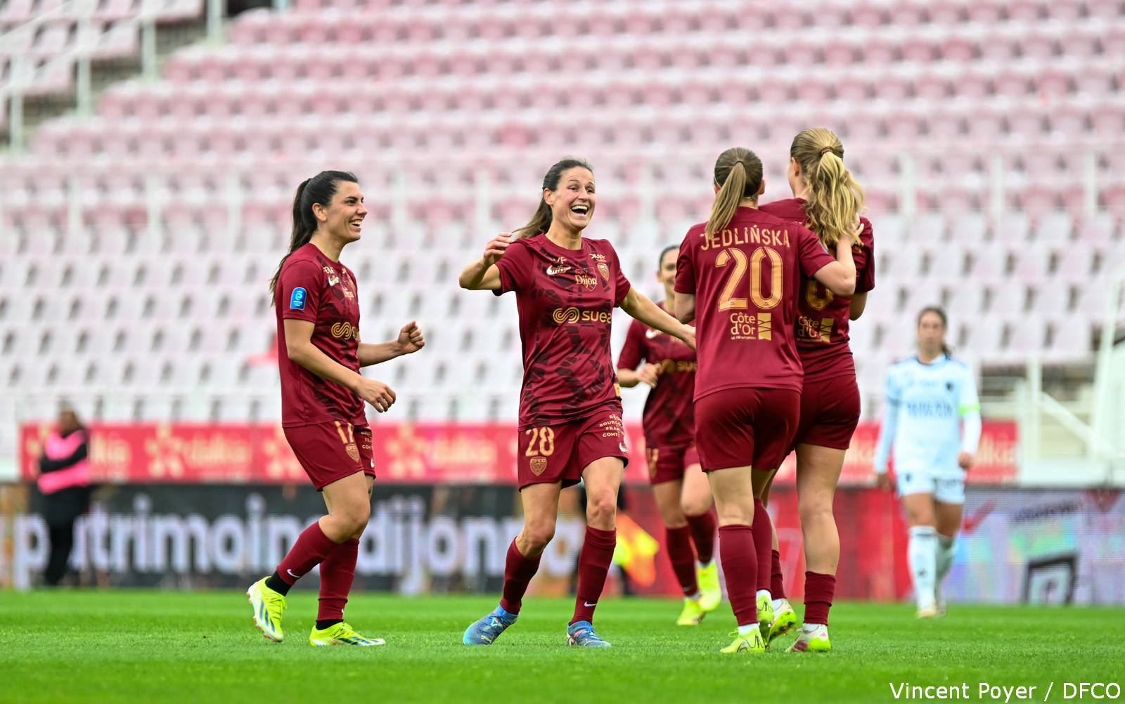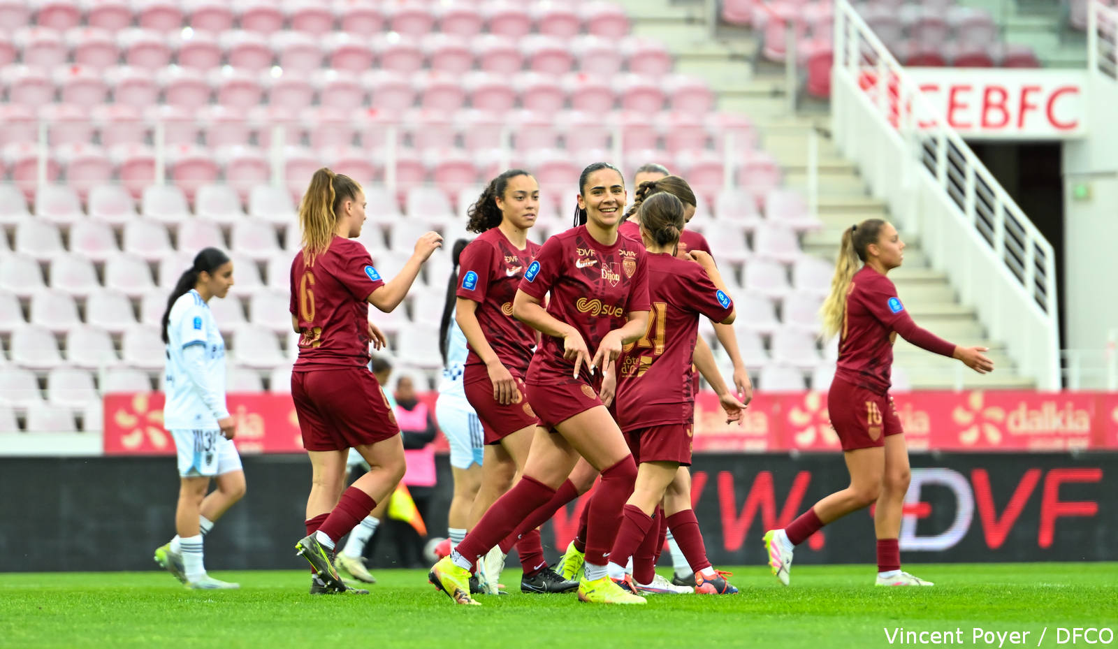 DFCO : Talaslahti – Goetsch (c) (McGrady, 47′), Grec, Carage (Taylor, 48′), Vairon – Declercq (Picard, 67′), Gay, Lavaud – Terchoun, Jedlinska (Richelandet, 60′), Pinther (Defour, 60′).