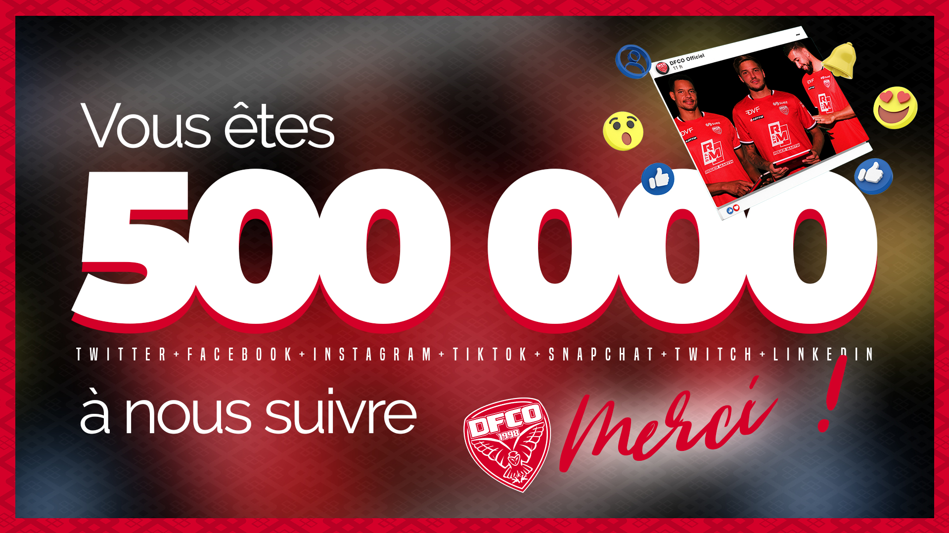 En ce dimanche midi, on tenait à vous remercier pour votre fidélité. Grâce à vous, la communauté dijonnaise a franchi la barre des 500 000 followers sur nos réseaux sociaux.