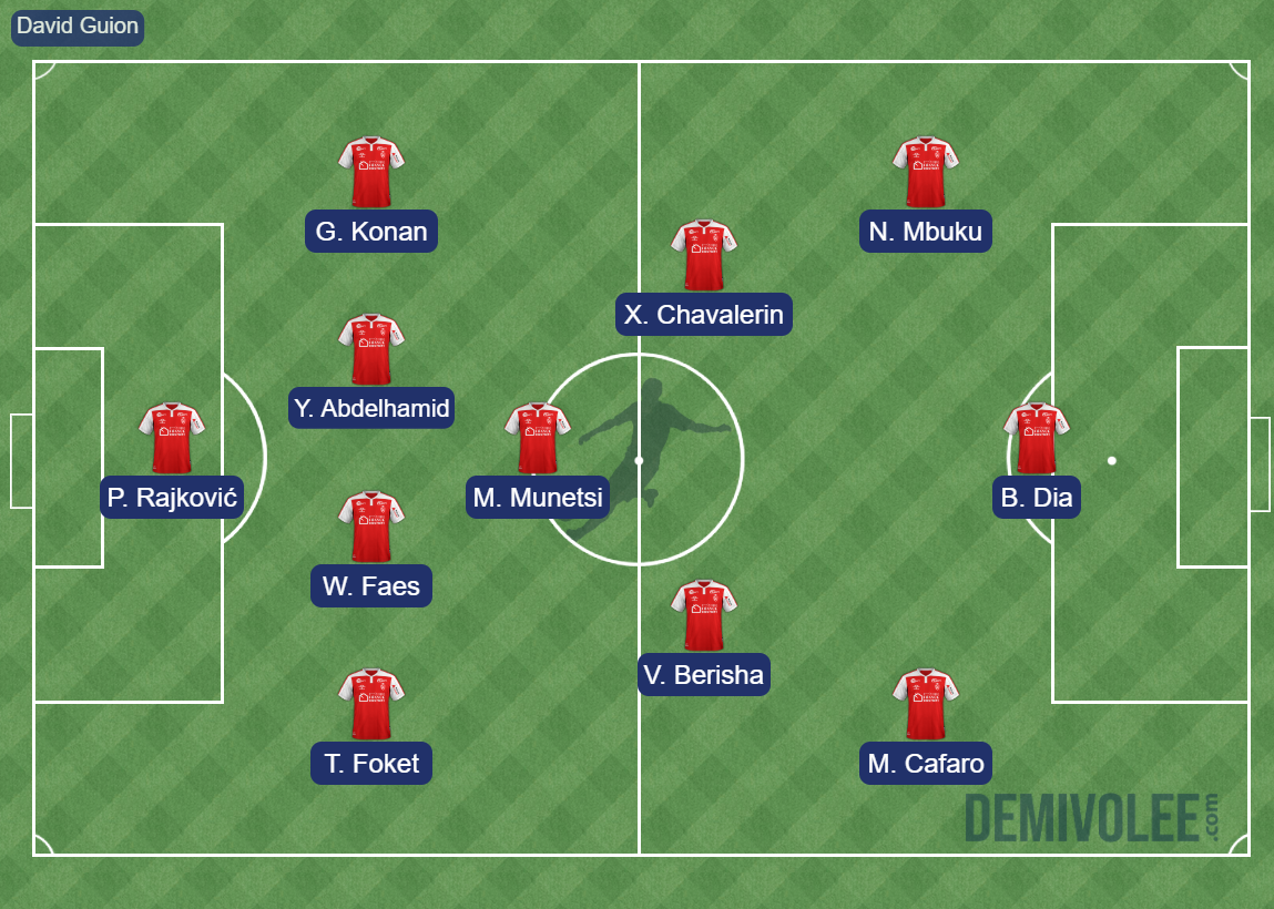 Milieux de terrain : Chavalerin (7) - Kutesa (8) - Munetsi (15) - Zeneli (10) - Berisha (14) - Cassama (23) - Cafaro (24) - Doumbia (25)